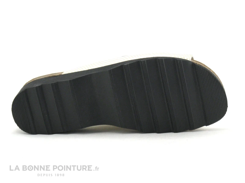 La marque française de chaussures confort Artika propose avec succès depuis des années cette paire de mules Artika Gadin, en cuir beige verni effet serpent, bien souple et de qualité.