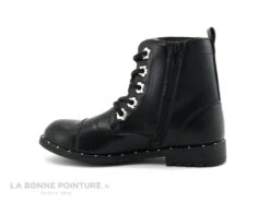 Wipop WOLFFY Noir – Boots Fille Noires – Oeillets Fleurs Argent
