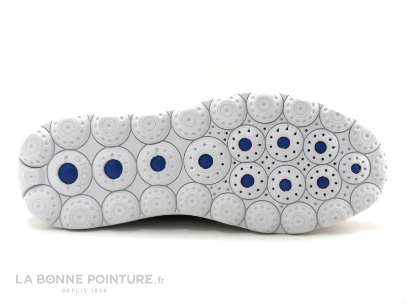 La semelle de marche blanche est en EVA, dotée du système Geox Zero-Shock avec coussinets sphériques qui offrent un excellent amorti et absorbent les chocs.