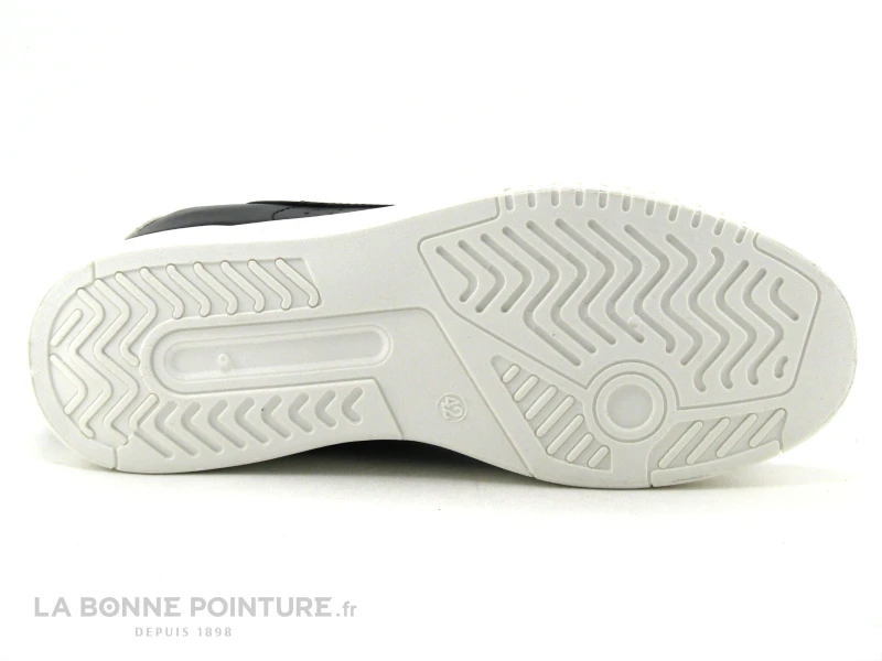 Cette basket de ville Homme pas chère Moza-X B850830 est en simili cuir noir, avec une partie blanche à l’arrière.